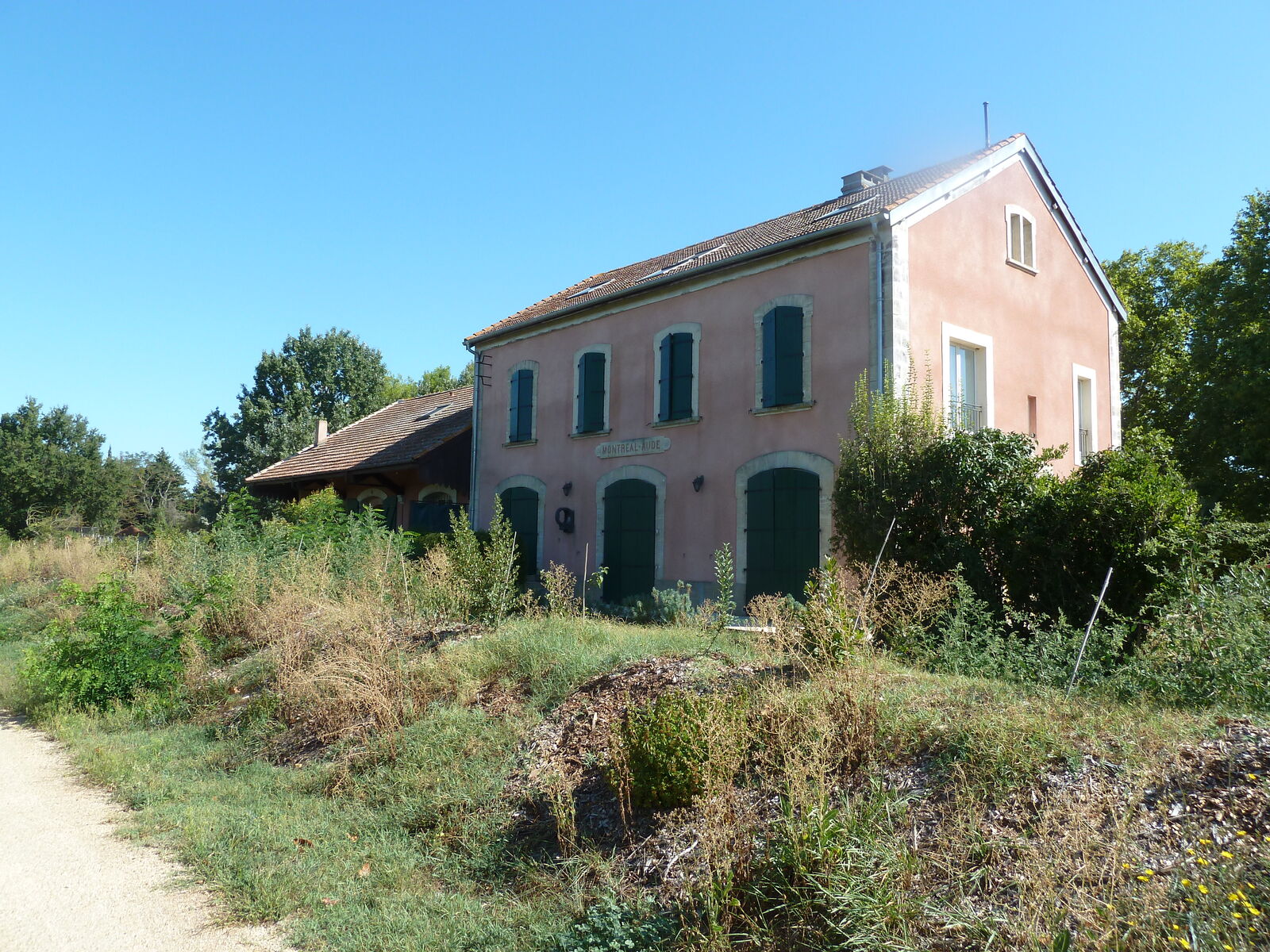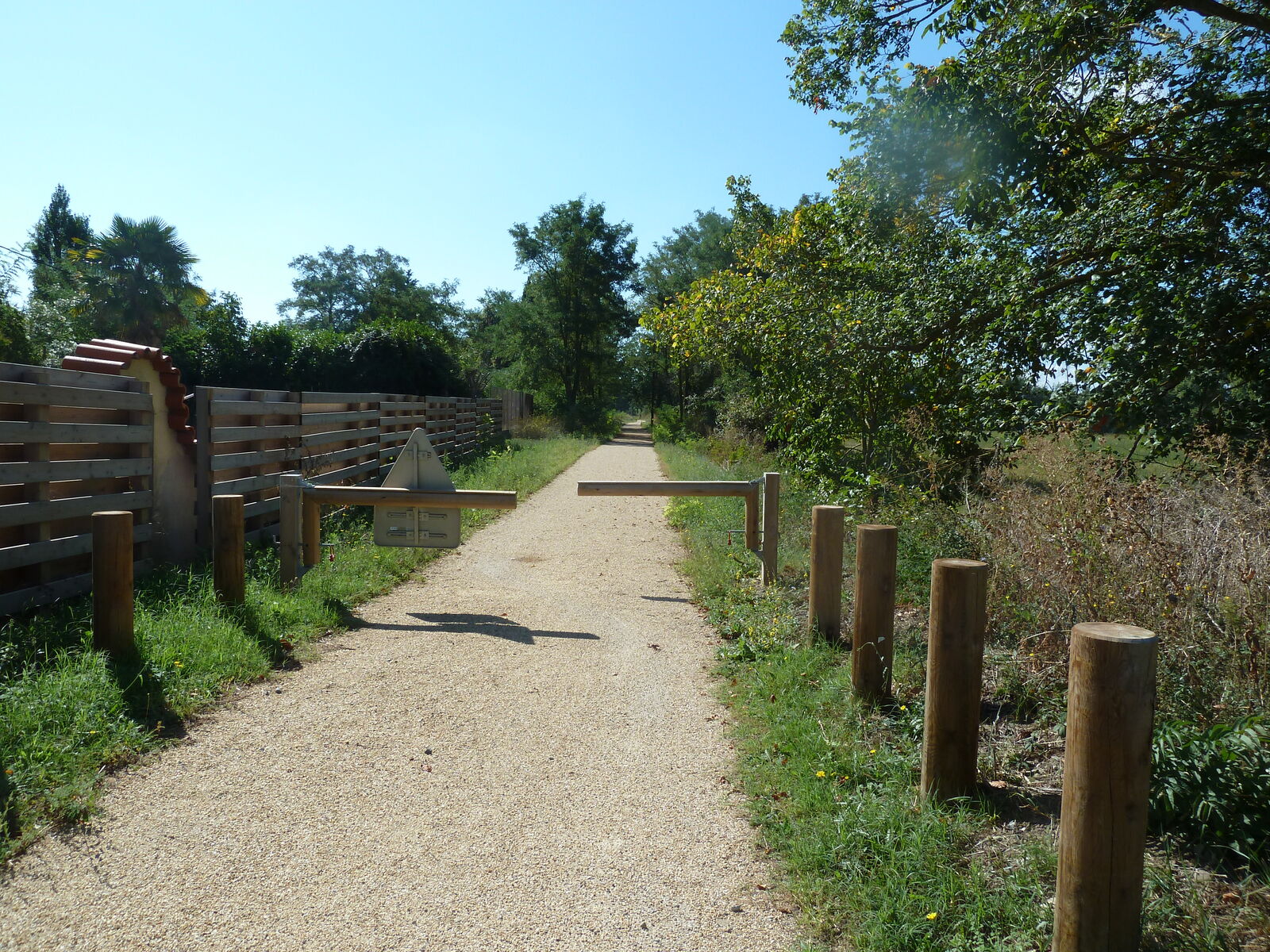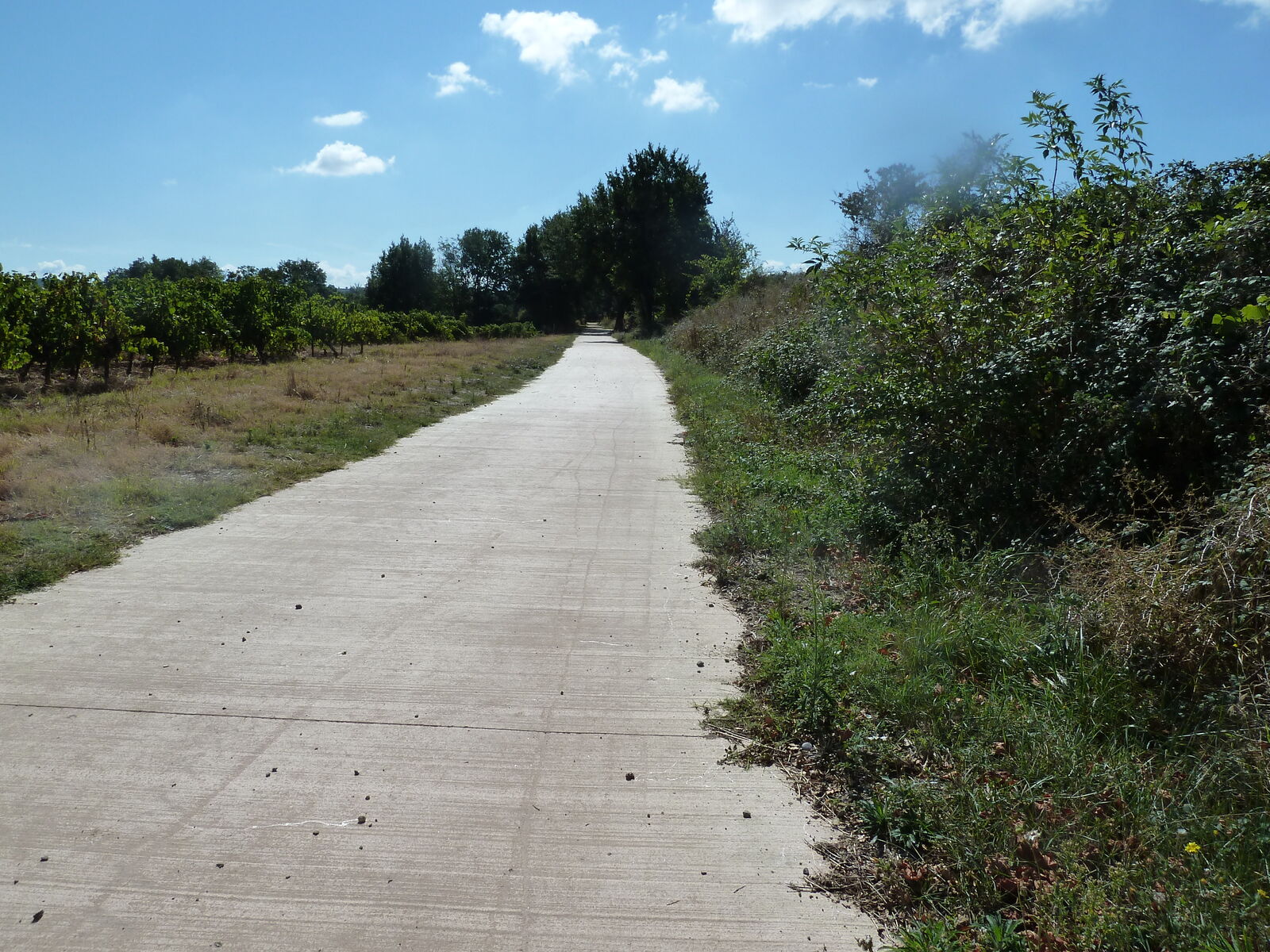 Die Fahrt aus Carcassonne hinaus führt durch ein Industriegebiet und danach 15km über die meist schnurgerade und mittelstark befahrene D119. Dann geht es weiter auf dem erst 2022 eröffneten Bahntrassenweg, auf dem ich anschließen bis kurz vor Mirepoix fahre. Im Nachhinein wäre es besser gewesen, mit dem Zug noch eine Station weiter bis Bram zu fahren, wo dieser Weg beginnt.