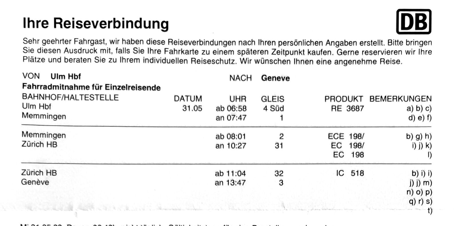 Weil sich diese Route schon vor zwei Jahren bewährt hat, bin ich auch dieses Mal wieder über Zürich und Genf angereist. Alle Züge waren pünktlich, so dass ich um 13:47 in Genf war, von wo es um 14:59 mit dem TER ohne Umstieg nach Valence ging. Dort kam ich ebenfalls pünktlich um 18:05 an.Mein Reiseplan bis GenfDa mir die in Frage kommenden Campingplätze zu weit ausserhalb lagen, hatte ich mich nach einer Unterkunft in Valence umgeschaut und bin dabei auf das Vélo Gîte gestoßen. Dort wird die Übernachtung im Mehrbettzimmer für 20€ angeboten. Das Gîte liegt nicht weit vom Bahnhof. Der Service ist freundlich und unaufdringlich, das Gîte perfekt ausgestattet. Es gibt eine Küche zum Selberkochen und eine Terrasse zum Draußensitzen. Im 4-Bett-Zimmer war noch ein französischer Bikepacker aus Australien und ein Nicht-Radfahrer.