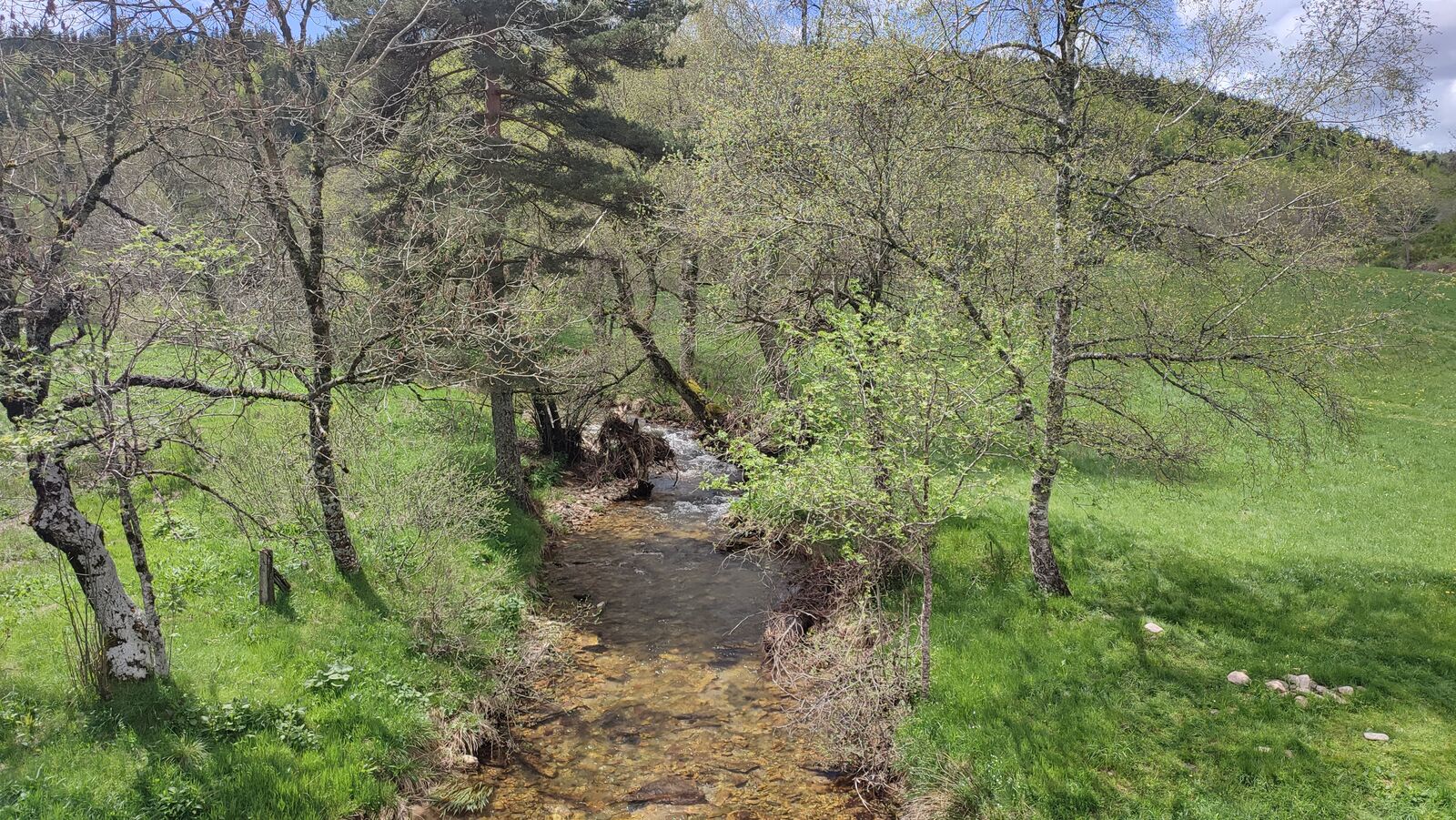 Als Startpunkt habe ich den Bahnhof von Chasseradès gewählt, der ganz in der Nähe der Quelle des Allier liegt. Die Anreise von Perpignan im TER-Regionalzug über Narbonne und Nîmes verläuft planmässig. Die Befürchtung, dass die wenigen Fahrradstellplätze in den Zügen wegen des vorangehenden langen Wochenendes und den kommenden Pfingstfeiertagen belegt sind, erwies sich als unbegründet. Da die Cevennen-Bahnlinie gerade wegen Erneuerungsarbeiten zwischen La Bastide und Mende nicht verkehrt, muss ich in La Bastide in den Bus umsteigen. Die Fahrradmitnahme ist kein Problem. Das Rad mitsamt Gepäck wird einfach in den Gepäckraum gelegt. Gegen 15 Uhr steige ich in Chasseradès aufs Rad.
