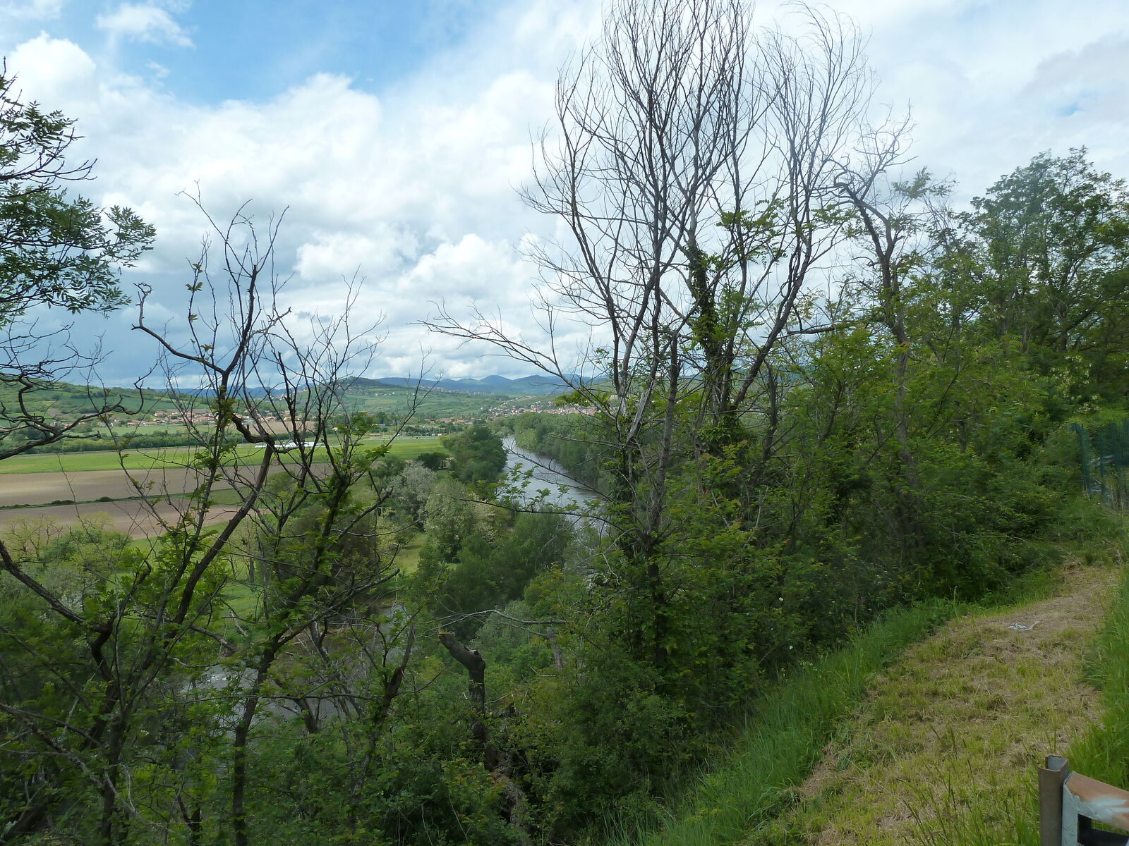 Auf dem ersten Teil der heutigen Strecke gibt es am Allier nur die Autobahn. Die Véloroute V70 verläuft hier weiter östlich durch die Hügel. Da mir das zu anstrengend ist, fahre ich nach einer kurzen Runde durch Issoire weiter im Westen auf langweiligen und meist kilometerlang schnurgeraden Landstraßen und erreiche bei Longues wieder den Allier. Die Strecke und die Orte kommen mir bekannt vor. Später stelle ich fest, dass ich hier vor vier Jahren schon einmal gefahren bin. Wieder näher am Fluss geht es bis zum Campingplatz “Les Ombrages” in Dallet, der von einem niederländischen Paar geführt wird.